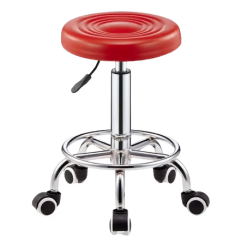 Silla de oficina ergonómica roja con ruedas, ajuste de altura 46‑59 cm, respaldo de malla y asiento acolchado, ideal para confort y productividad en el trabajo.