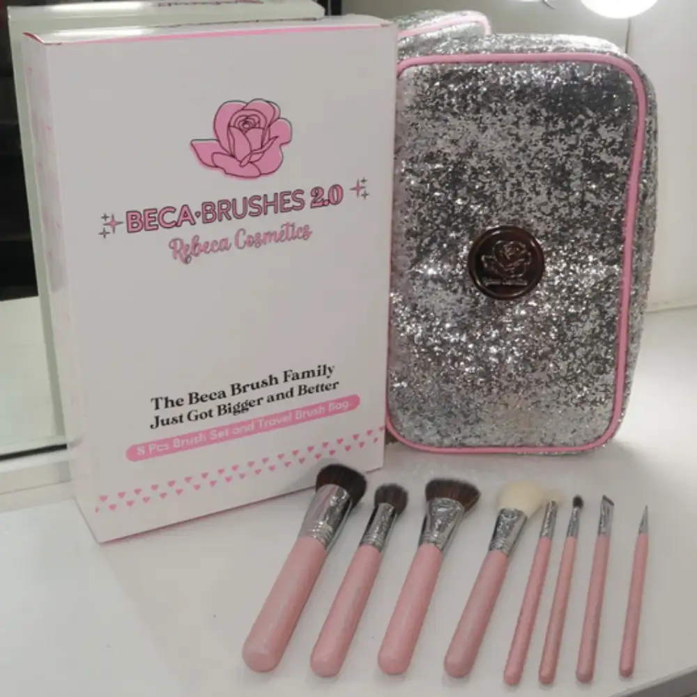 Descubre el set de 8 brochas Beca Brushes 2.0 con bolsa de viaje, cerdas premium y mangos ergonómicos para un maquillaje profesional, uniforme y fácil de transportar.