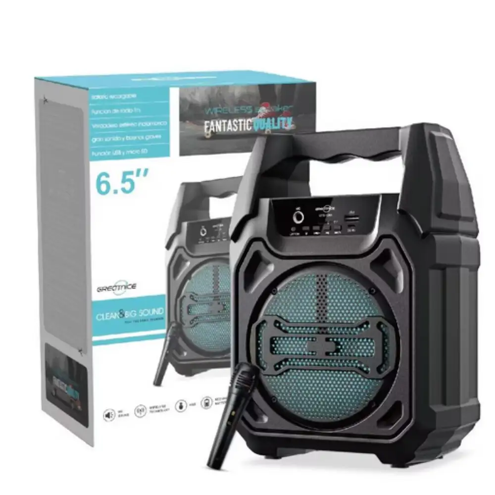 Bocina Bluetooth GTS1283 de 6.5 pulgadas con sonido de alta fidelidad, conectividad inalámbrica instantánea, batería de larga duración de 12 horas, diseño compacto y elegante, resistencia al agua IPX4, para fiestas al aire libre y uso en interiores.