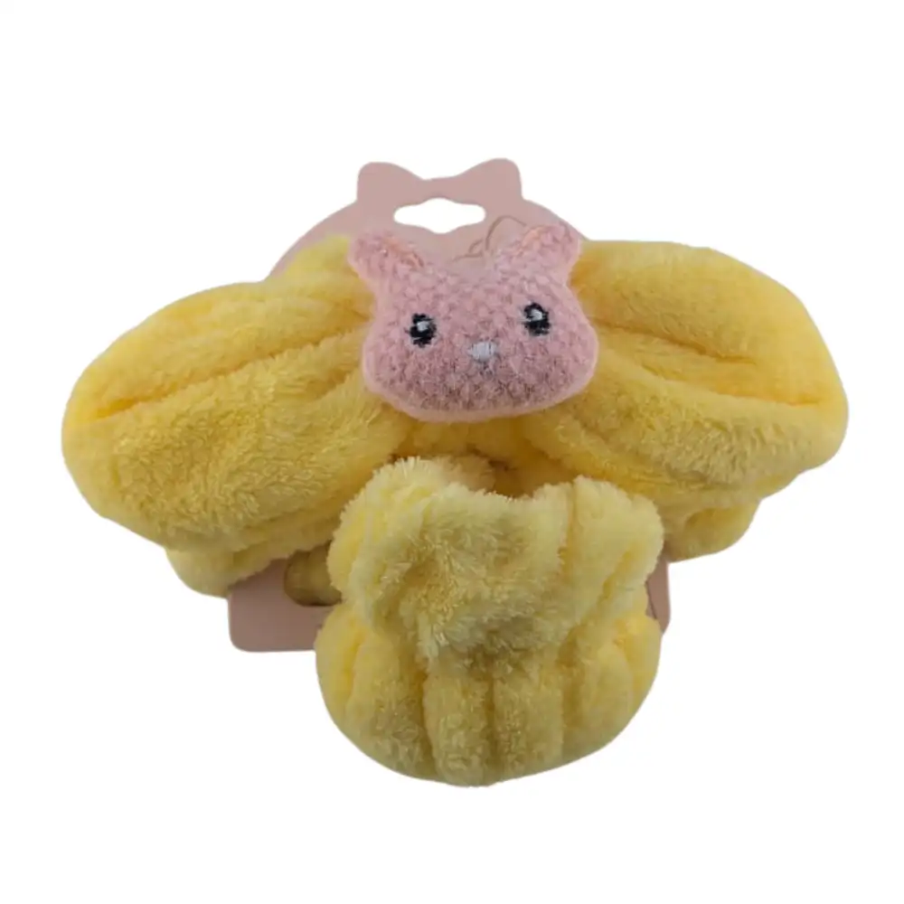Diadema de felpa suave y cómoda con lazo decorativo en vibrante color amarillo, diseñada especialmente para rutinas de cuidado facial, spa y maquillaje mantiene el cabello alejado de la cara, evitando manchas y facilitando una aplicación precisa y sin interrupciones, ideal para todo tipo de cabello y piel sensible
