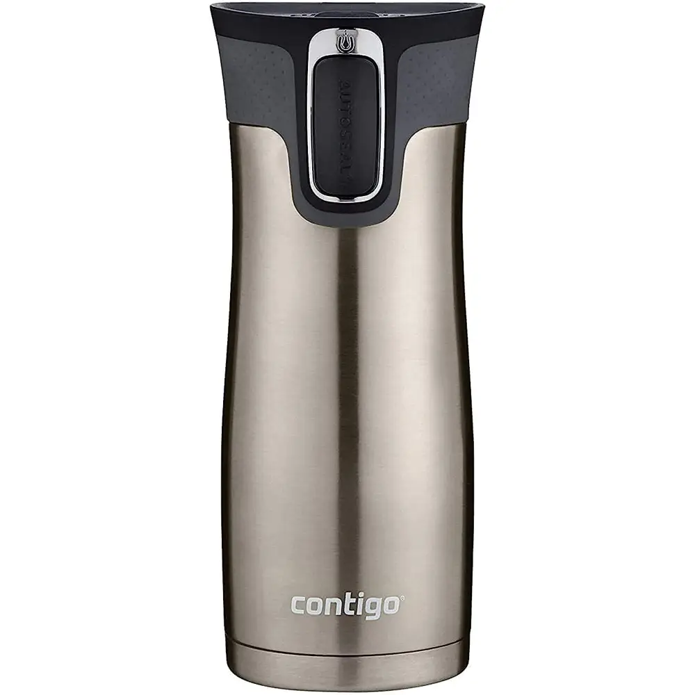 Taza de viaje Contigo AUTOSEAL West Loop de acero inoxidable de 16 oz, ideal para bebidas calientes o frías, a prueba de fugas y fácil de limpiar.