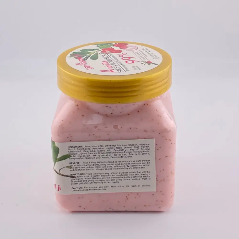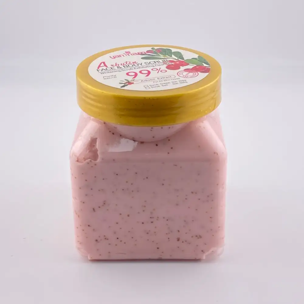 Exfoliante facial y corporal con arbutina, fórmula natural que elimina células muertas, reduce arrugas y controla el acné, dejando la piel suave e hidratada.
