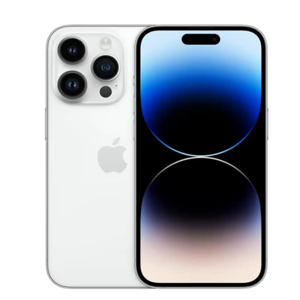 iPhone 14 Pro Renovado 128 GB en color Plata con eSIM, pantalla Super Retina XDR y cámara profesional rendimiento premium a precio accesible para usuarios.
