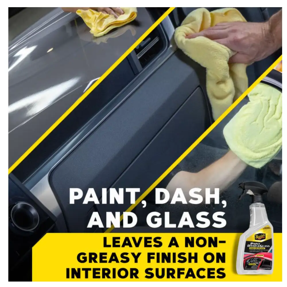 Meguiar\'s Paint, Dash & Glass Inside & Out Detailer es un spray versátil que limpia y protege pintura, tablero y vidrios, ofreciendo brillo duradero y defensa UV en una sola aplicación.