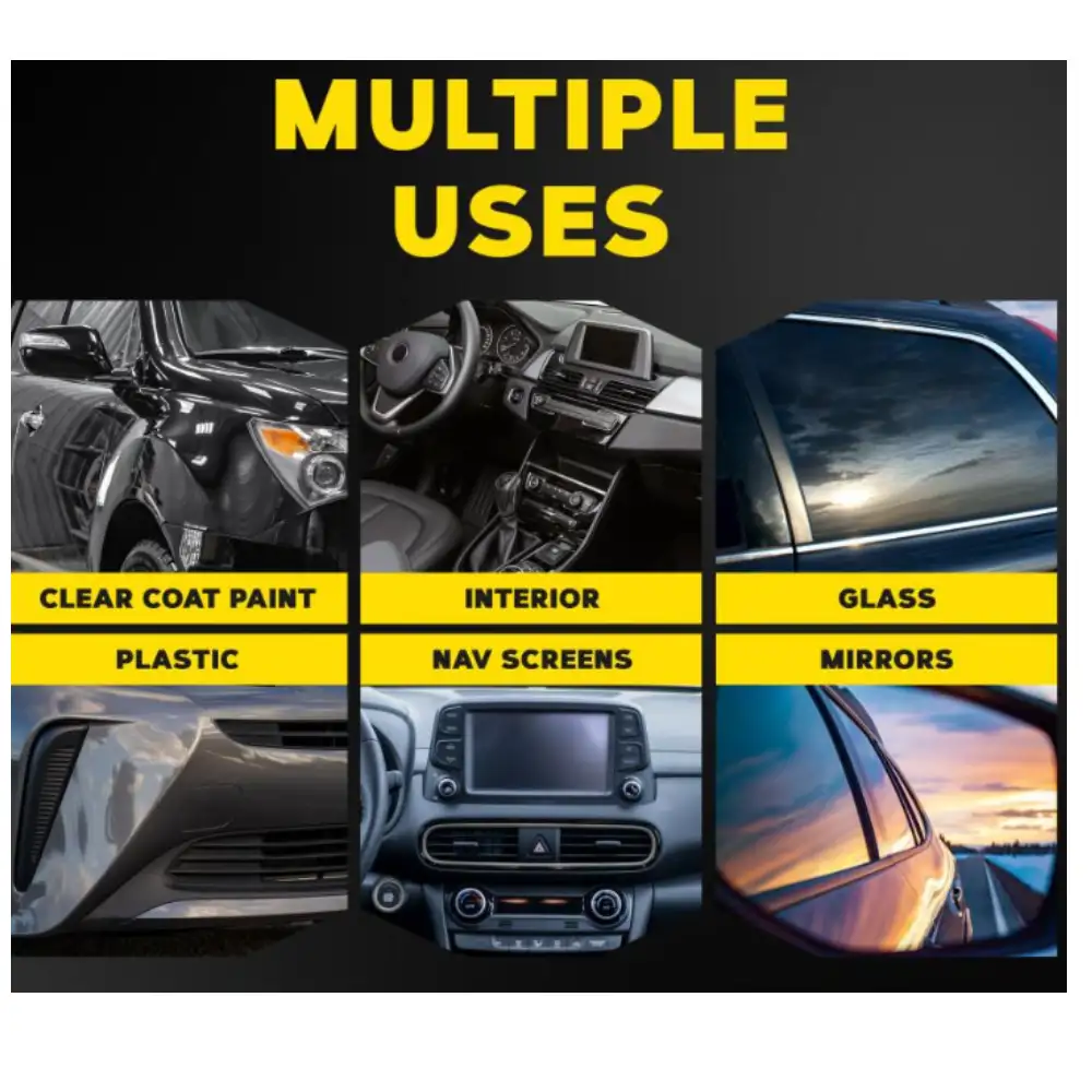 • Su fórmula de alta tecnología combina solventes suaves y polímeros protectores que penetran profundamente en la pintura, el tablero y los vidrios, eliminando suciedad, manchas de grasa, polvo y residuos de insectos sin dañar la capa original al rociar y limpiar con un paño de microfibra, el producto deja una capa invisible que realza el brillo y forma una barrera resistente al agua y a los rayos UV, prolongando la vida estética del vehículo.