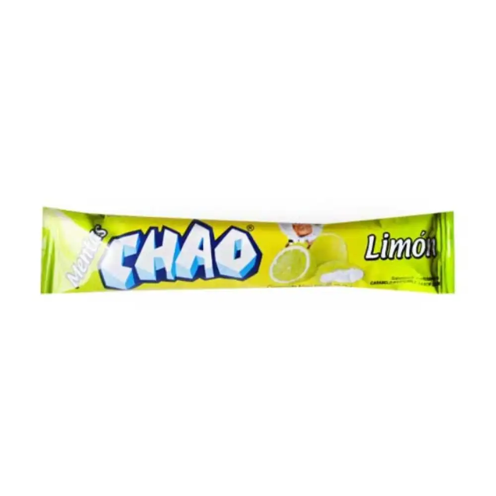 Chicles CHAO Menta Limón – Refrescante combinación de sabor mentolado y cítrico, ideal para disfrutar en cualquier momento, con textura suave y larga duración, sin azúcar y aptos para toda la familia