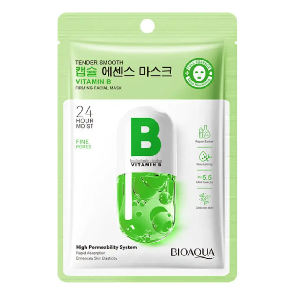 Descubre la mascarilla facial reafirmante Bioaqua con vitamina B, 25 ml, que hidrata, mejora la elasticidad y reduce líneas finas, ofreciendo una piel más firme y radiante en pocos días.