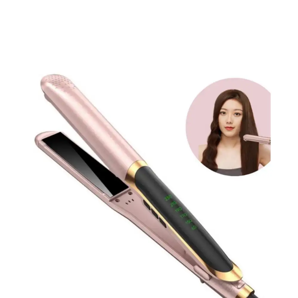 Plancha de cabello con recubrimiento cerámico, 30 watts y diseño rosado alisa, riza y protege tu pelo con calor uniforme, para uso doméstico y profesional.