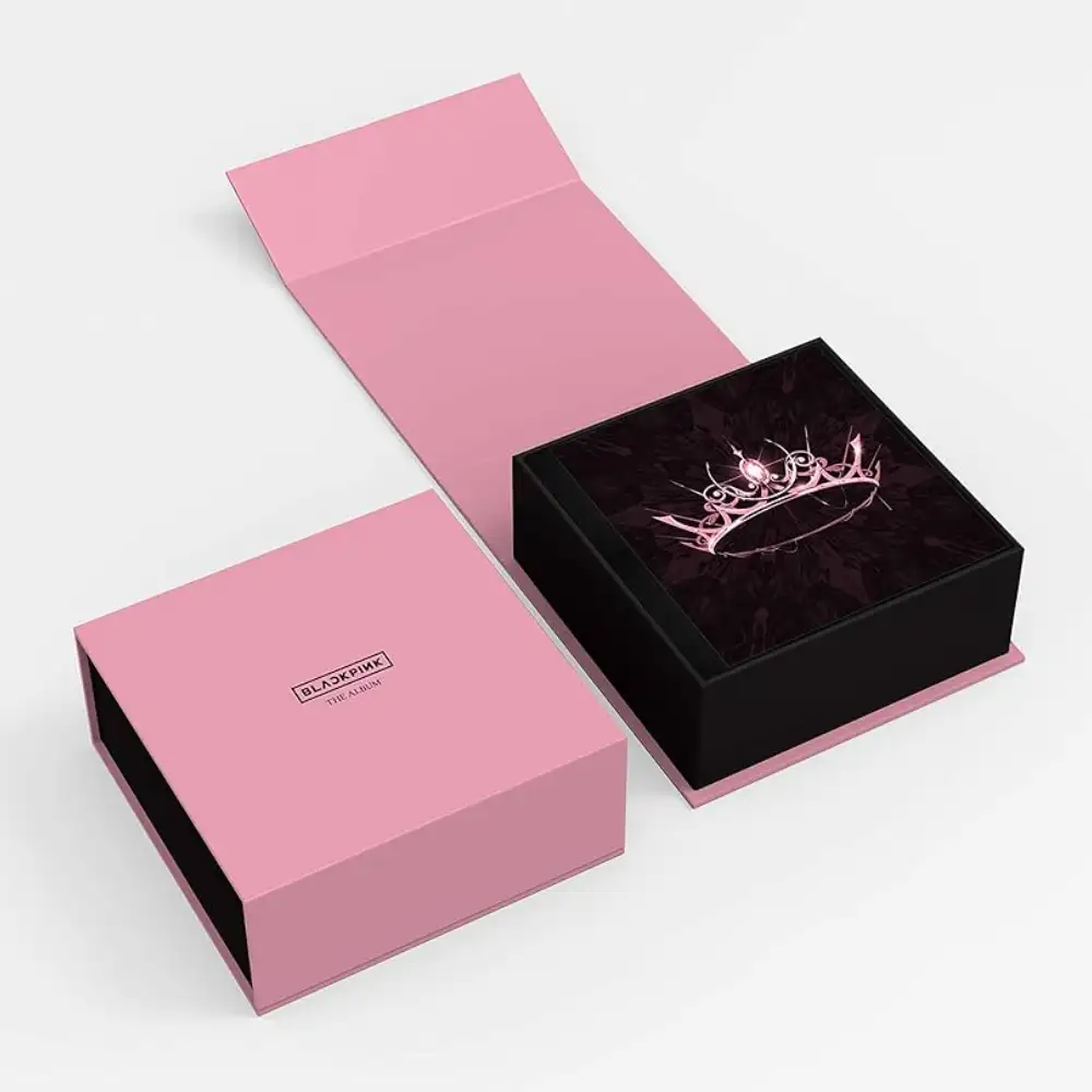 • El empaque de The Album Versión 2 está diseñado con una portada artística de edición limitada, impresa en papel de alta calidad con acabados brillantes y relieve, y viene sellado en una caja rígida que protege el disco y los materiales adicionales, convirtiéndolo en un objeto de colección que aumenta su valor con el tiempo.