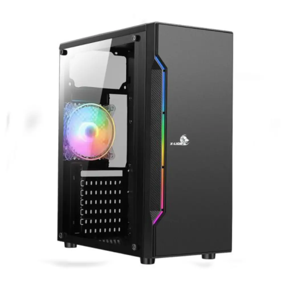 • Además, cuenta con 3 abanicos RGB para una mejor ventilación y estilo, una línea frontal RGB para darle un toque visual atractivo y una fuente de poder certificada de 500W, garantizando un suministro eléctrico eficiente y estable.