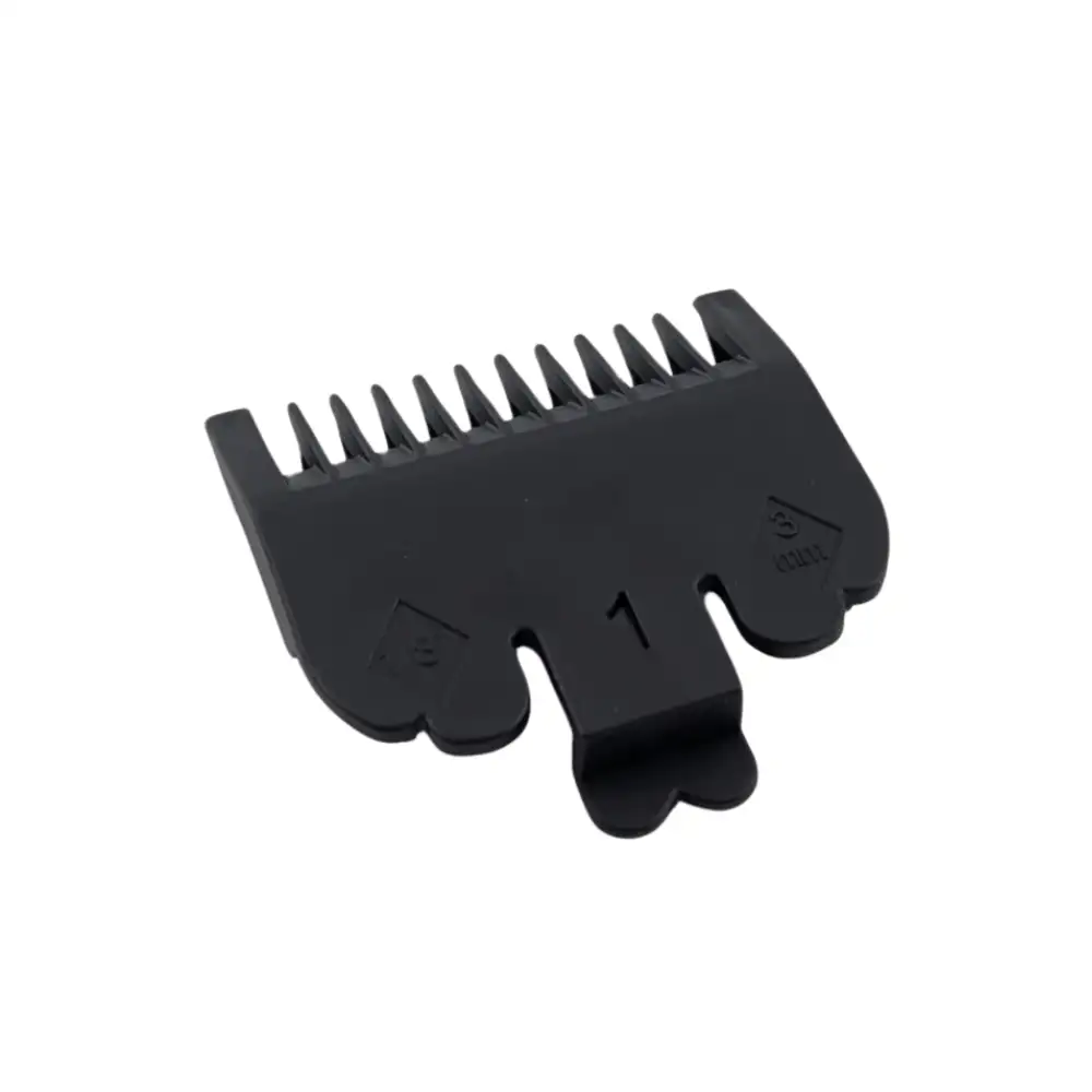 • Fabricado en acero de alta resistencia con un acabado negro mate, este peine combina durabilidad y estética. El material resistente a la corrosión asegura una larga vida útil incluso bajo uso intensivo en entornos de salón, mientras que su color negro discreto se integra perfectamente con cualquier modelo de máquina de cortar pelo, facilitando la limpieza y el mantenimiento sin perder su apariencia profesional.