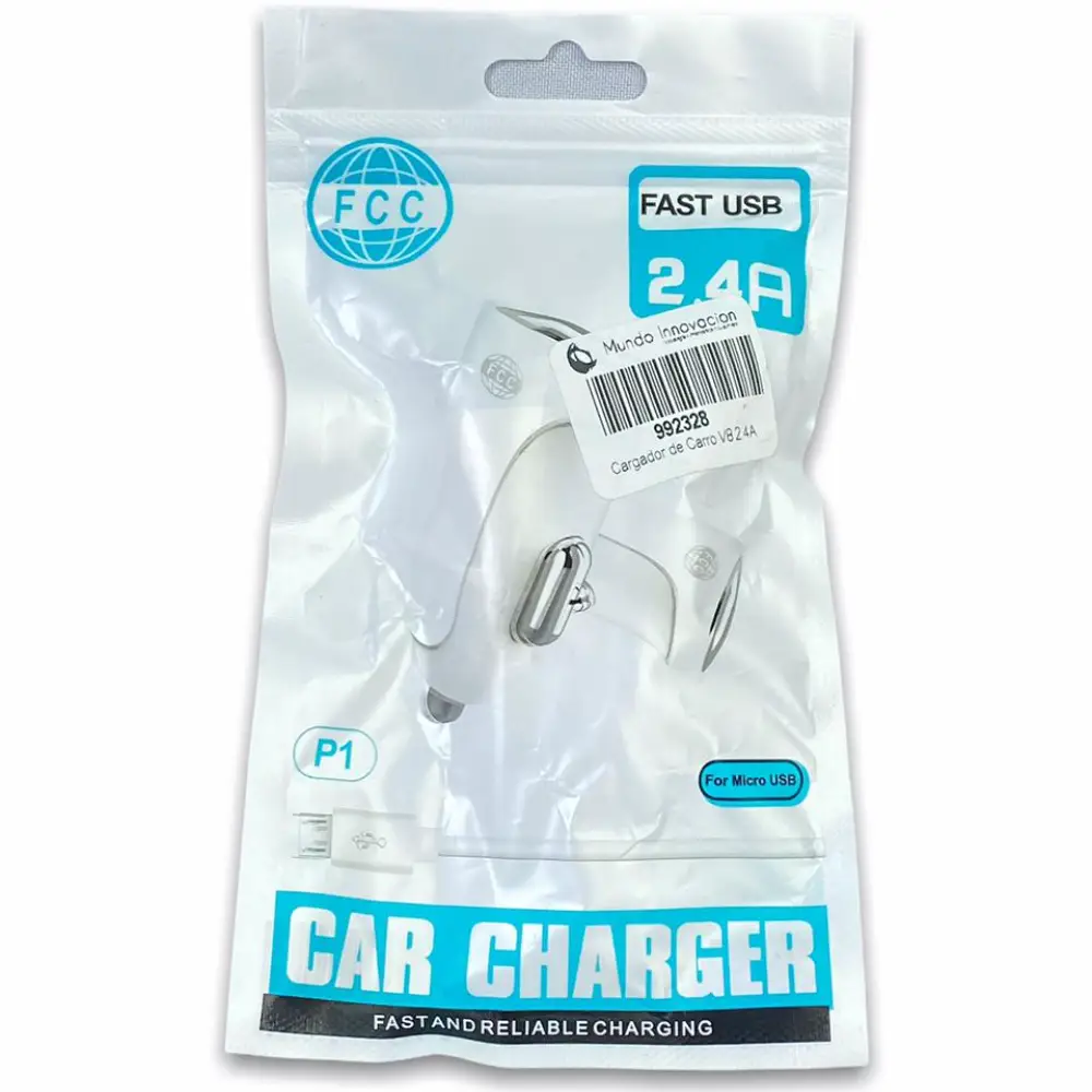 Cargador de carro bolsa P2 para iPhone, compacto, rápido y seguro. Ideal para viajes y compatible con diversos dispositivos móviles.