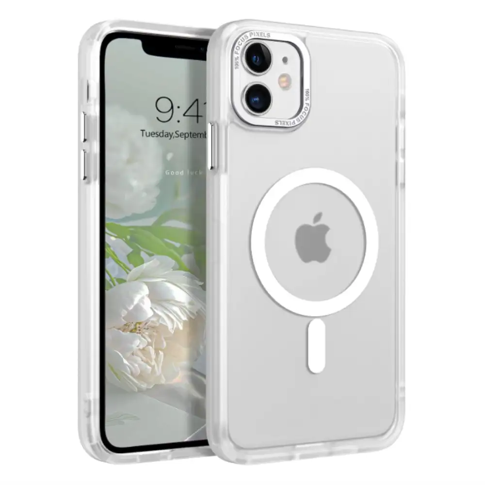 Cover magnético Magsafe blanco para iPhone 12 de 6.1 pulgadas: protección completa, carga inalámbrica sin retirar, diseño ultra delgado y fácil de instalar, mantiene la estética y funcionalidad del dispositivo.