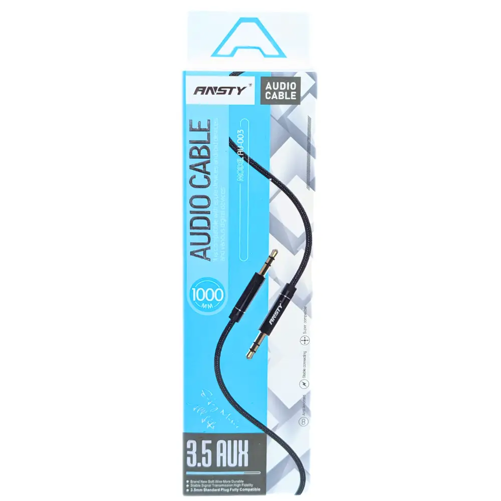 Cable de Audio Ansty Modelo AU-003 en Negro. Calidad de sonido superior y diseño duradero, ideal para todos tus dispositivos de audio.
