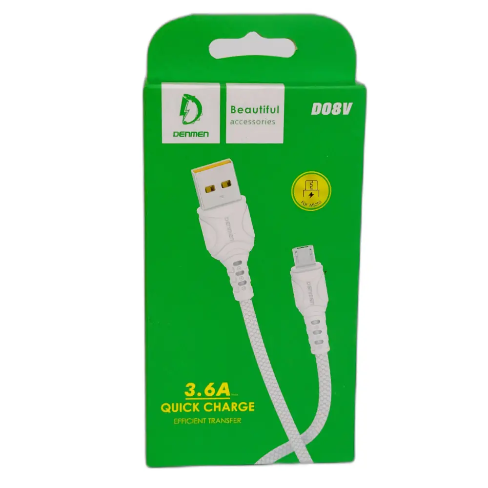 Descubre el Cable Denmen para Micro 3.6A Modelo D08V, ideal para carga rápida y dispositivos móviles, portátil y con diseño elegante.