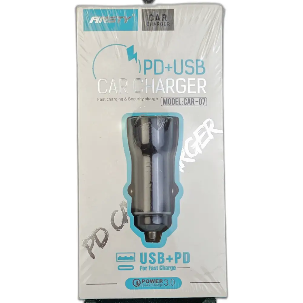 Cargador de Carro Ansty 3.0 Modelo CAR-07, carga rápida y eficiente, diseño compacto con puerto USB dual, ideal para viajes y dispositivos múltiples.