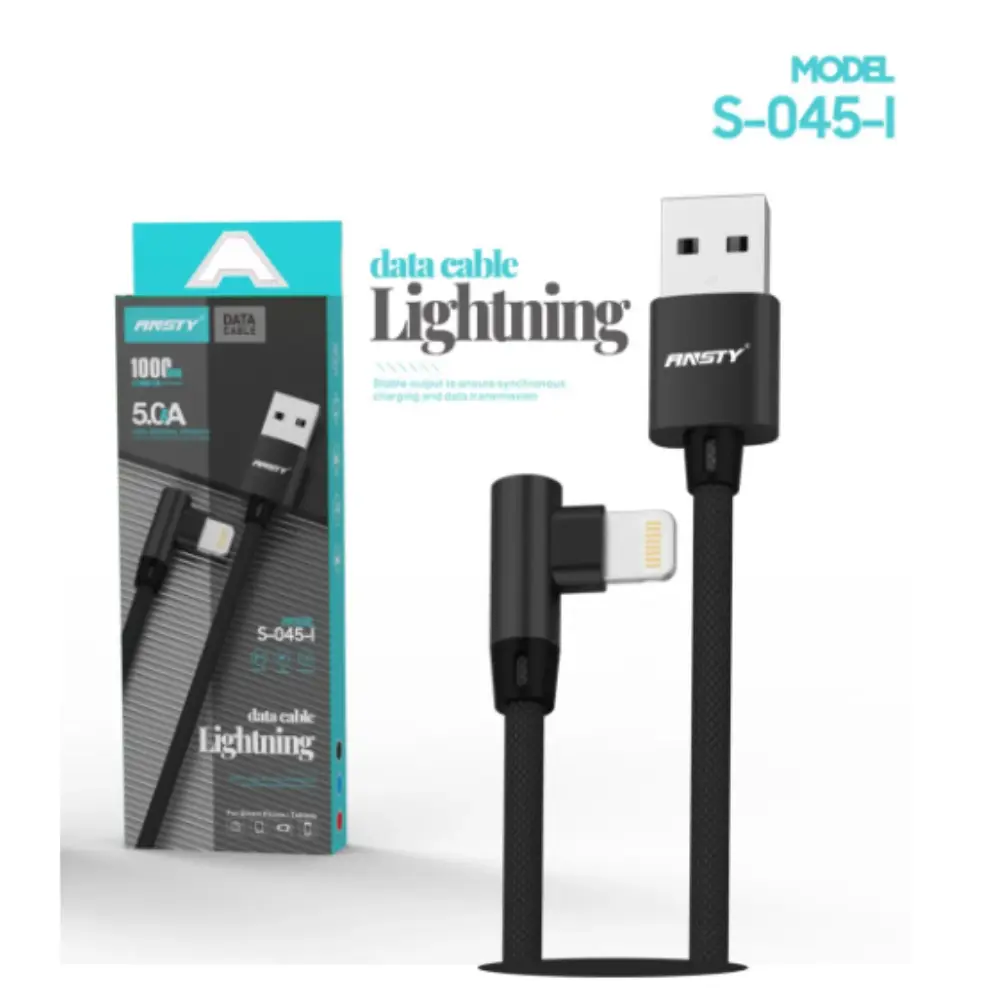Cable de Datos Ansty 5.0A Lightning a USB A de 1000mm - Negro