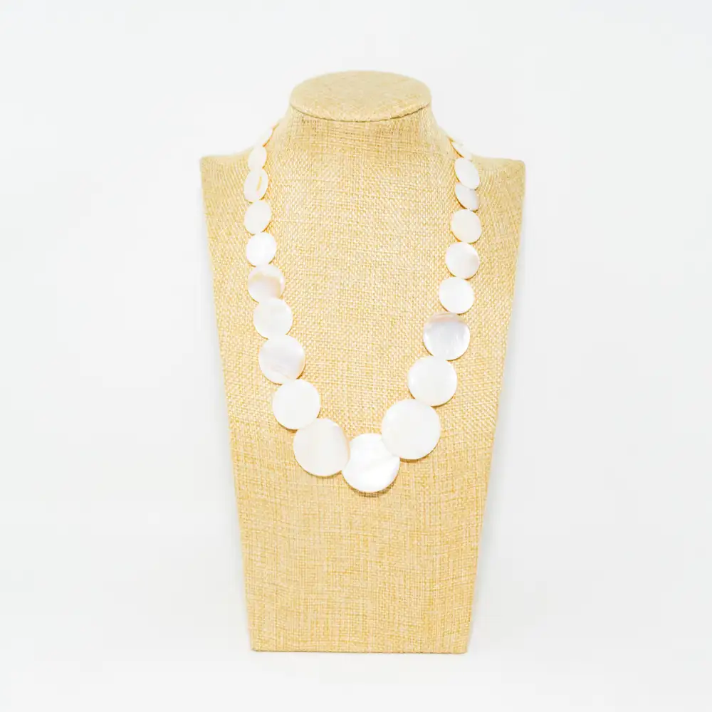 Collar de nácar auténtico con diseño artesanal, elegante y versátil, perfecto para complementar cualquier atuendo con un brillo perlado natural y sofisticado.