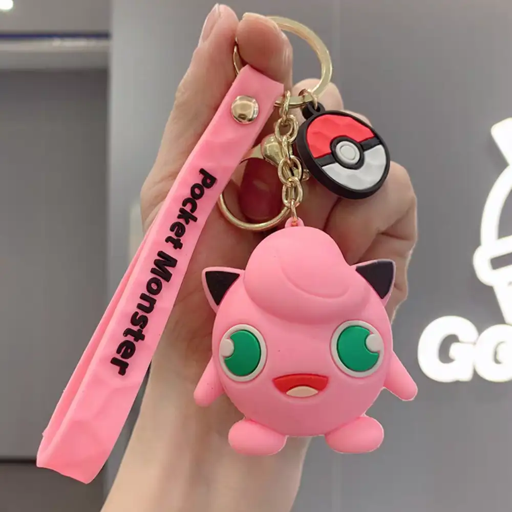 Llavero de goma de Pokémon con diseño exclusivo de Jigglypuff, flexible y duradero, ideal para personalizar llaves, mochilas y regalar a fans y coleccionistas.