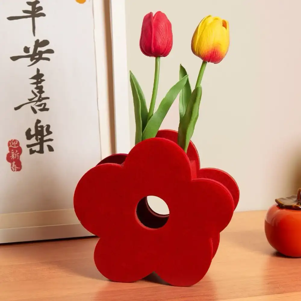 Descubre el elegante florero de fieltro en forma de flor, ideal para centros de mesa y decoraciones de hogar, combina estilo natural y durabilidad en un solo adorno.