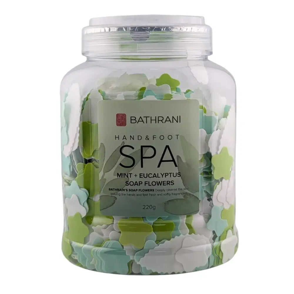 Flores de jabón Bathrani para manos y pies, 220 g, con refrescante aroma a menta y eucalipto, espuma suave que limpia profundamente, hidrata la piel y deja una sensación de frescura duradera, ideal para uso diario y cuidado natural