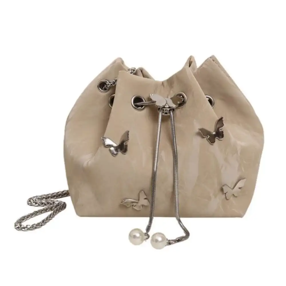 • El diseño incorpora un elegante lazo de moda en la parte superior que aporta un toque femenino y sofisticado, mientras que la cadena metálica ajustable permite llevar el bolso cruzado de manera cómoda y estilizada los delicados adornos de mariposa en los laterales añaden un detalle artístico que captura miradas y complementa cualquier atuendo, desde casual hasta formal, ofreciendo versatilidad y distinción.
