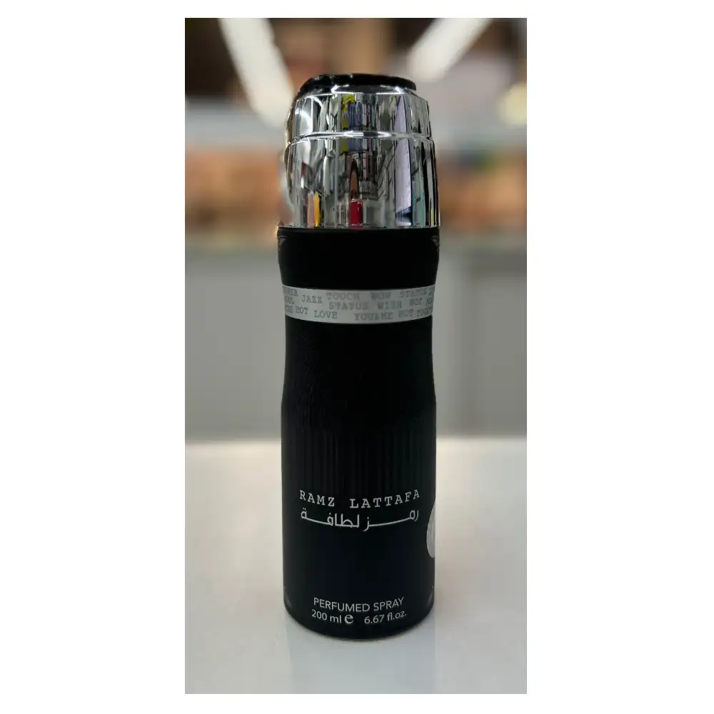 Ramz Lattafa Spray 200 ml ofrece una fragancia masculina oriental de larga duración, con notas de ámbar y sándalo, ideal para uso diario y eventos especiales.