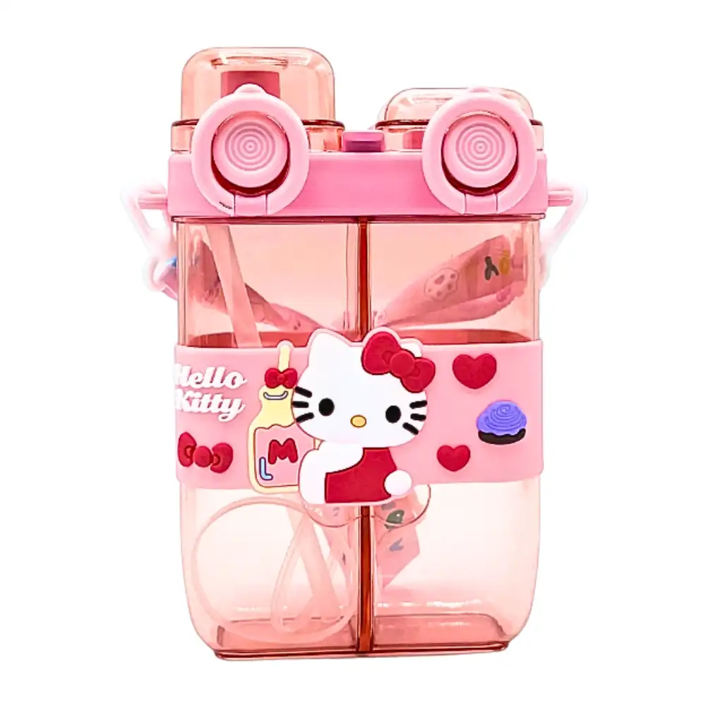 Botella Hello Kitty rosa de 750 ml con doble compartimento, pajita de silicona, correa ajustable y vaso a prueba de fugas ideal para escuela, deporte y viajes, brinda hidratación divertida.