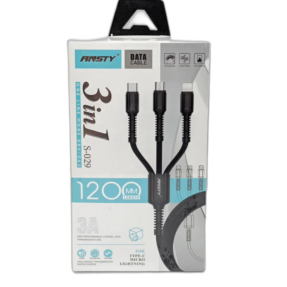 Cable Ansty 3en1 Type-C, Lightning, Micro - Modelo S-029