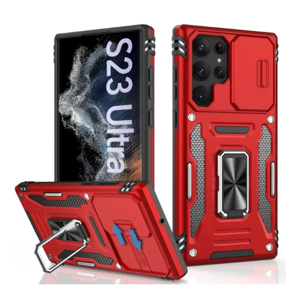• La cubierta para Samsung S23 Ultra en color rojo no solo ofrece una estética moderna, sino que también asegura la protección de tu dispositivo contra caídas y rasguños. Fabricada con materiales resistentes, tiene un diseño delgado que se adapta perfectamente al teléfono sin aumentar su grosor.