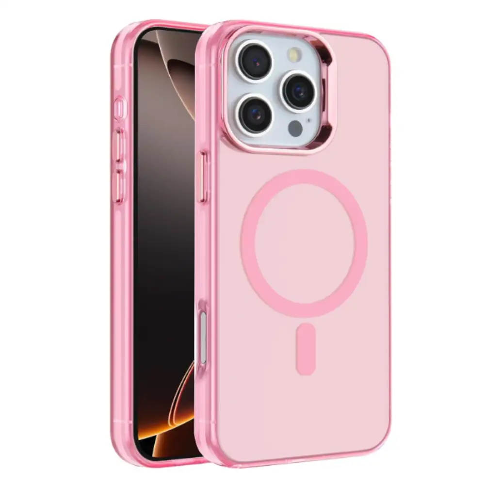 Cover magnético Magsafe rosa para iPhone 16 Pro: carga inalámbrica rápida, sujeción firme, protección contra golpes y rayones, compatible con accesorios Magsafe.