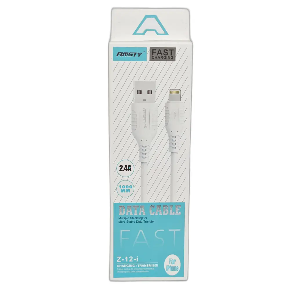Cable Ansty para iPhone 2.4A, modelo Z-12-i, ofrece carga rápida, durabilidad y compatibilidad con dispositivos Apple. Ideal para tu día a día.