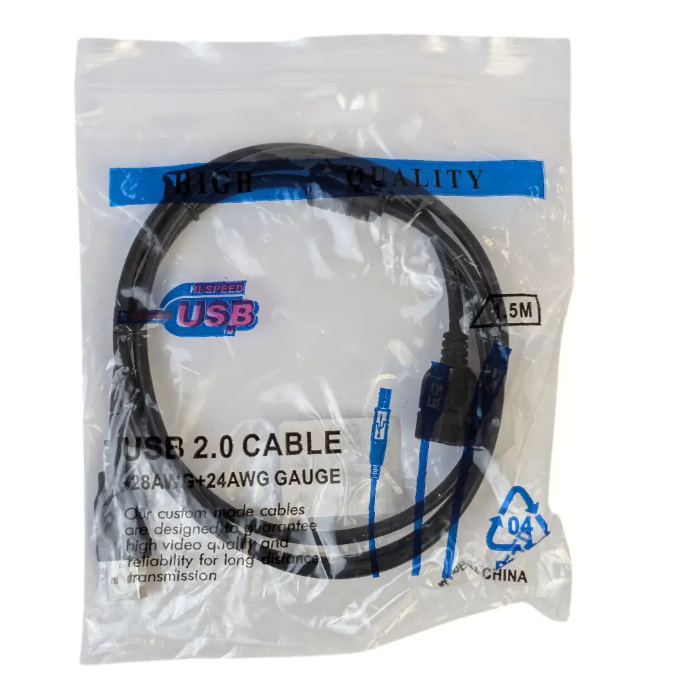 Cable USB a USB #2 de 1.5 metros en color negro, ideal para una conexión rápida y confiable entre dispositivos electrónicos.