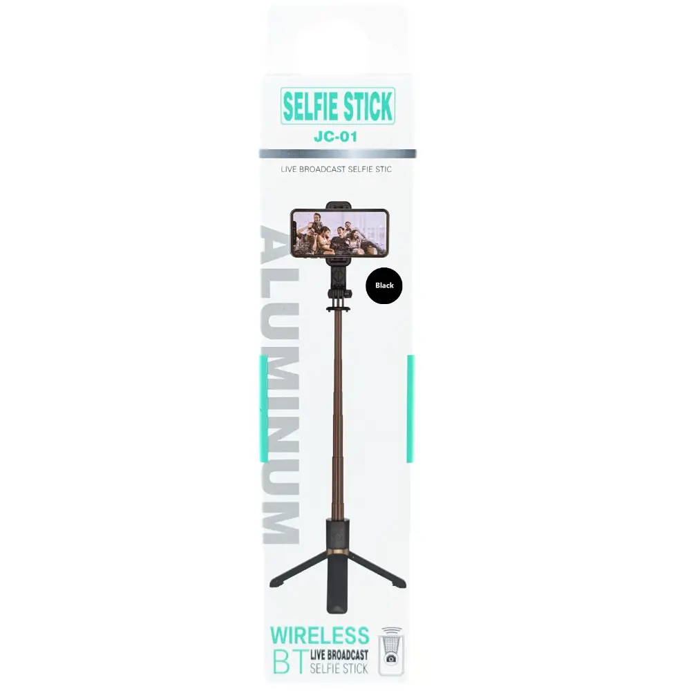 Capture momentos inolvidables con el Selfie Stick Modelo JC-01 en negro. Diseño ligero y portátil, ideal para cualquier ocasión. ¡Consíguelo hoy!