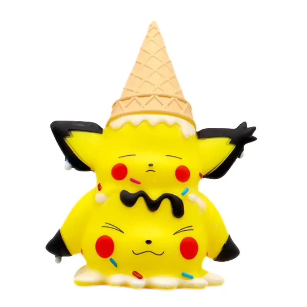 • Figura de colección inspirada en los populares personajes de Pokémon, Pichu y Pikachu, representados de forma creativa con un diseño temático de helado que añade un toque único y divertido a cualquier colección anime.