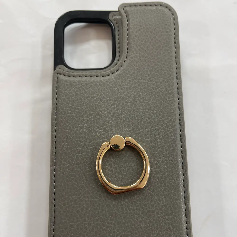 Funda tipo cartera oro rosa para iPhone 12, elegante y funcional, con múltiples compartimentos y acceso fácil a puertos, ideal para quienes buscan estilo y protección.