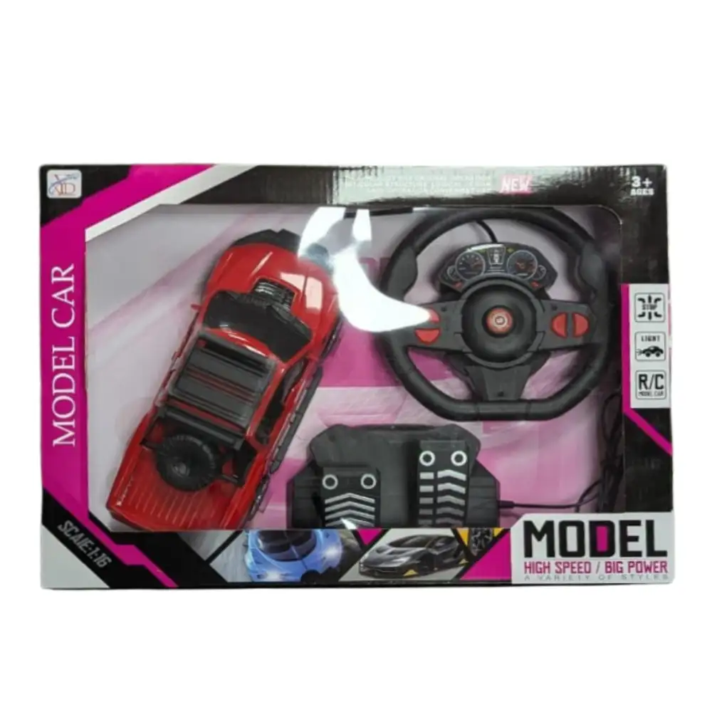 Coche de juguete a control remoto con volante tipo mando, diseño deportivo en color rojo brillante, batería recargable de larga duración, velocidad ajustable, ideal para niños y coleccionistas, diversión garantizada al aire libre y en interiores