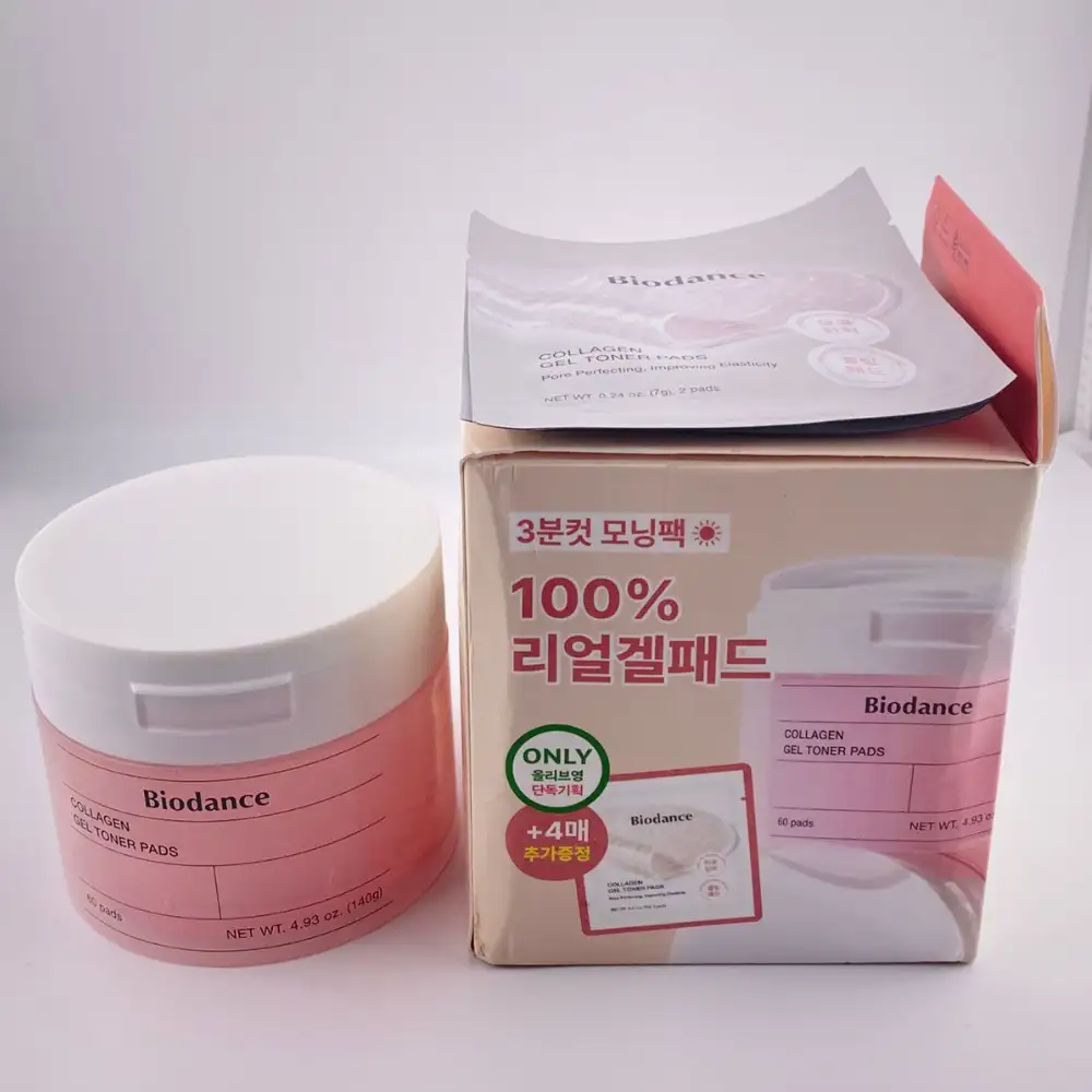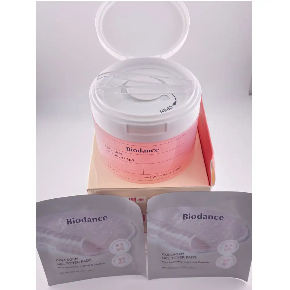 Almohadillas de tóner de gel de colágeno Biodance: minimizan poros, mejoran elasticidad y exfolian, dejando la piel hidratada, firme y radiante tras cada uso.