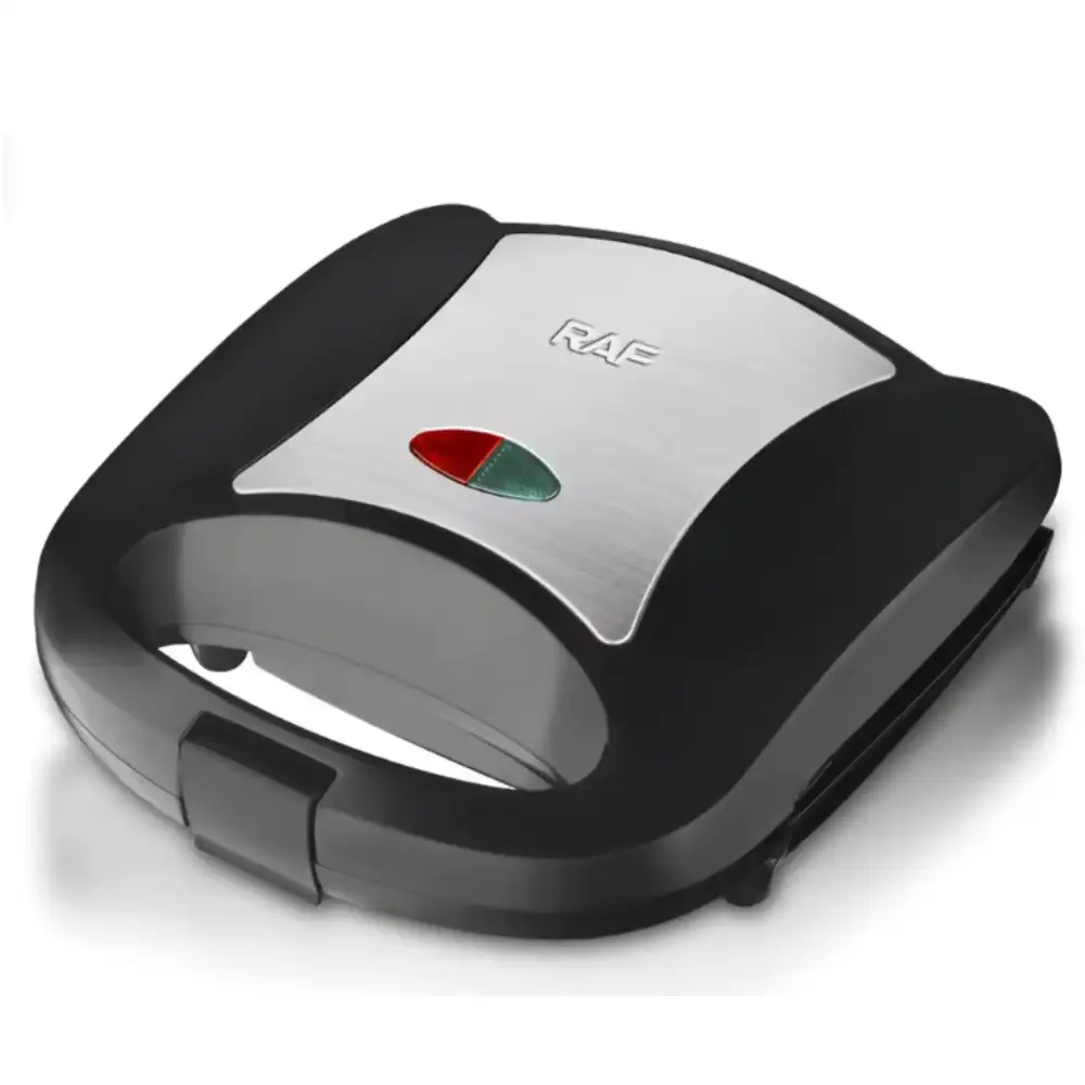 Sandwichera eléctrica RAF modelo R.9582S-110 de 750 W con placas antiadherentes, ajuste de temperatura, diseño compacto y fácil limpieza, ideal para preparar sándwiches, paninis y quesadillas en hogares y oficinas panameñas