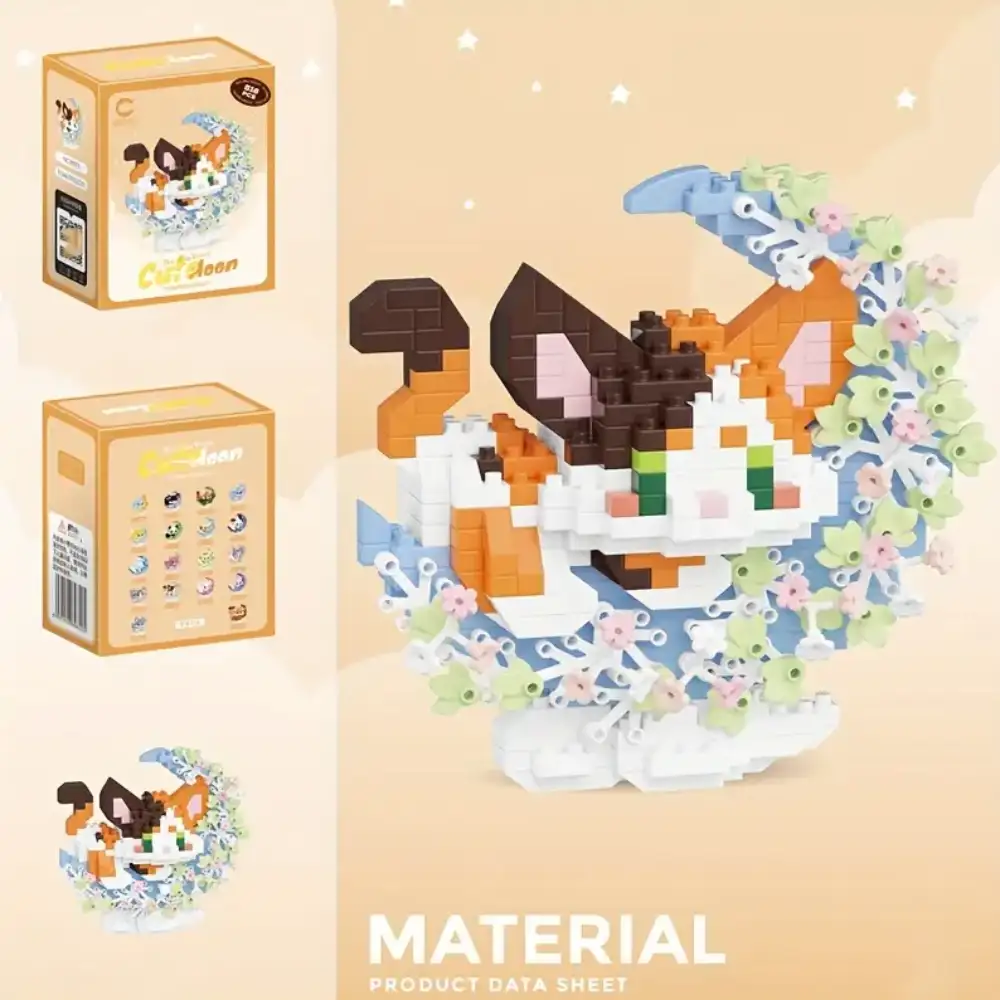 Set de bloques de construcción 3D con diseño de gato y flores, ideal para desarrollo creativo y decorativo, seguro y divertido para todas las edades.