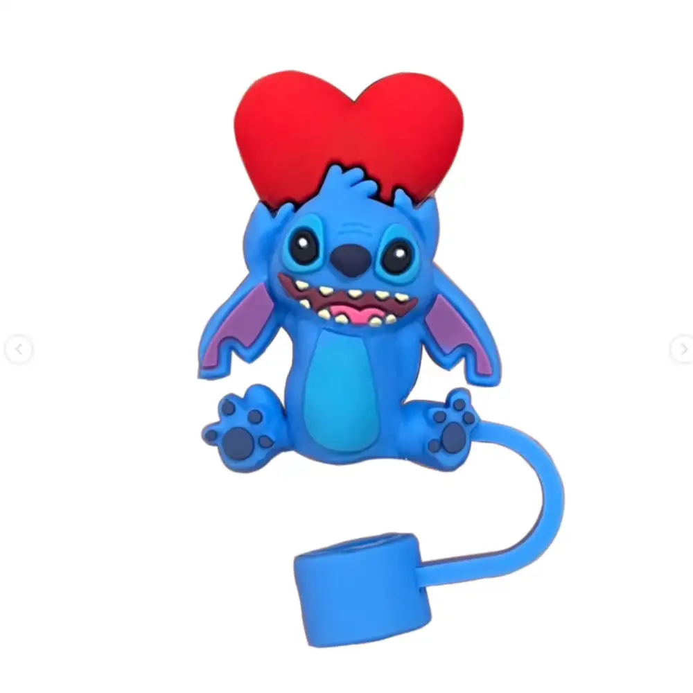 Dijes premium para tapas de pajita con diseños de Stitch, metal resistente y acabado brillante ideales para personalizar bebidas en fiestas y eventos temáticos.