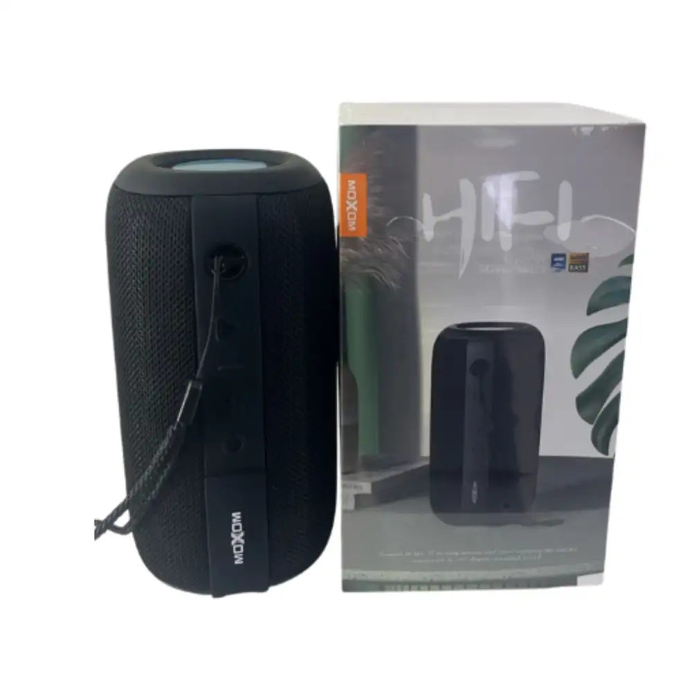 Moxom MX‑SK39 Altavoz Bluetooth Impermeable con sonido 360°, batería de 12 h, conexión dual‑device, resistencia al agua IPX7, diseño compacto y portátil para interior y exterior, compatible con Android e iOS, ideal para fiestas y camping