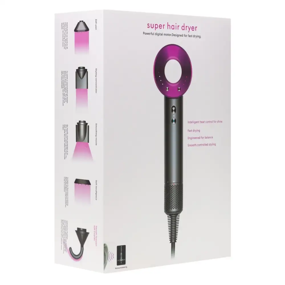 • Diseño ergonómico y ultra ligero que reduce la fatiga de la mano durante sesiones prolongadas de secado su cuerpo de aleación de aluminio y plástico de alta resistencia asegura durabilidad, mientras que el motor de bajo ruido permite un uso cómodo en entornos domésticos sin molestias auditivas, complementado con sistemas de seguridad contra sobrecalentamiento.
