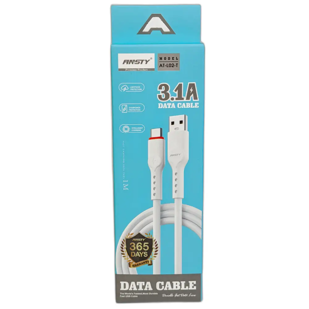 Cable Ansty 3.1A Modelo AT-L02-T ideal para carga rápida y duradera de dispositivos electrónicos, perfecto para uso en casa y oficina.
