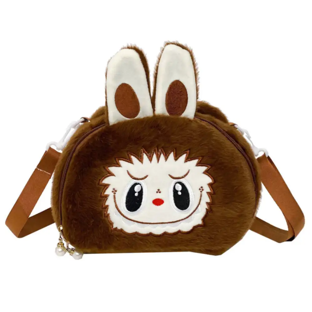 Bolso Cruzado Diseño Felpa Labubu - Café