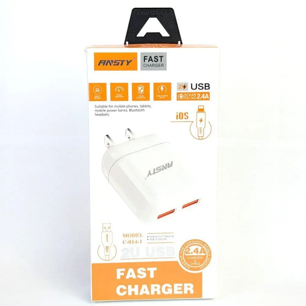 Cargador Ansty Para IOS 2 Puertos Usb 2.4 A Modelo C-014-I