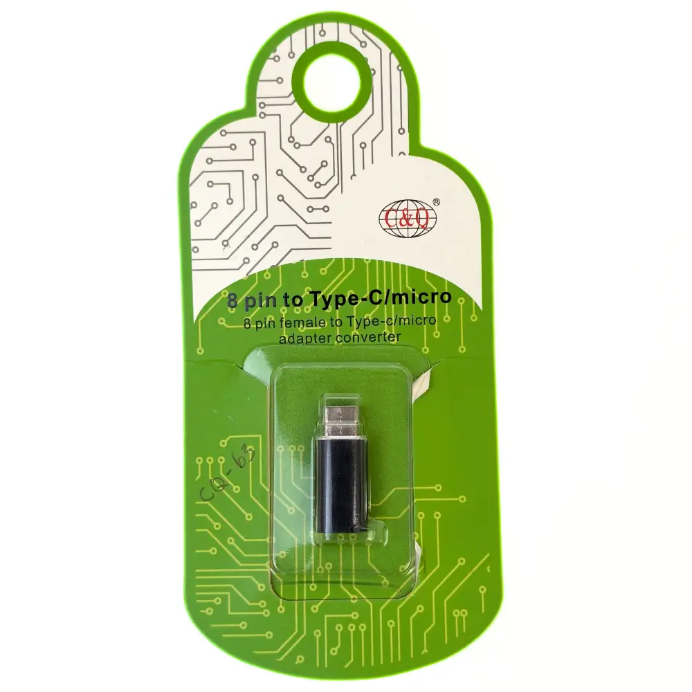 Adaptador OTG 8 Pin a Type-C/Micro Modelo C&Q - 063 en color Negro, ideal para transferir datos entre dispositivos con alta velocidad y eficiencia.