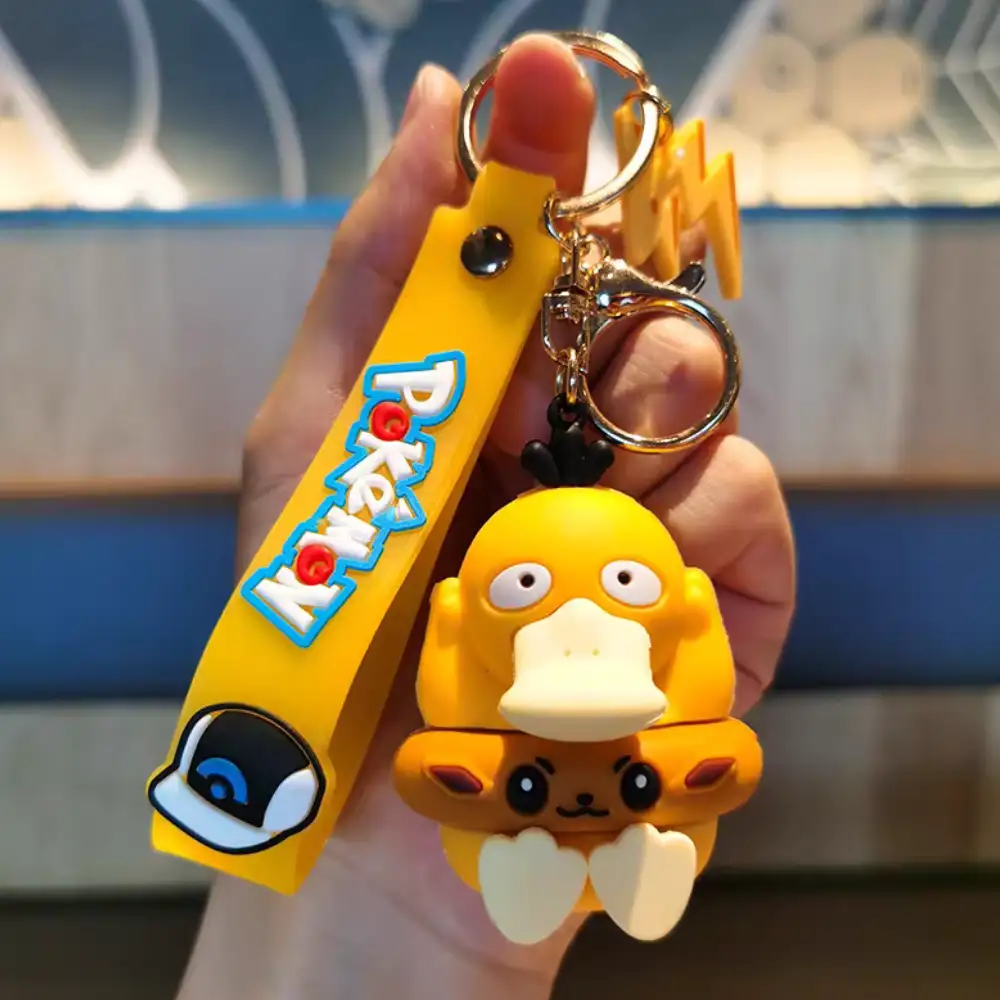 Descubre el llavero de goma Pokémon Psyduck con flotador Eevee, diseño 3D resistente y flexible, ideal para fans, coleccionistas y como regalo único y duradero.