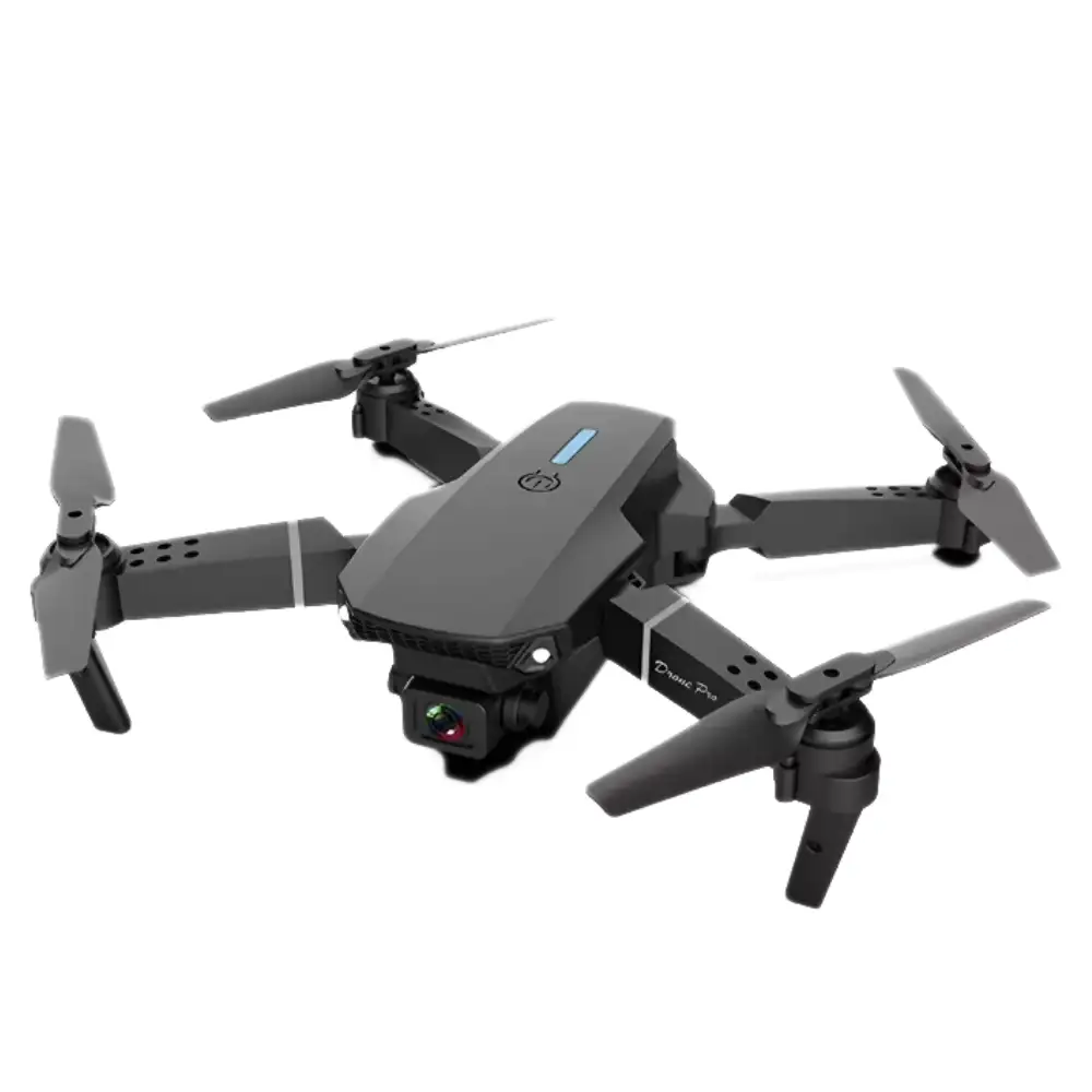 Descubre el E88 Drone negro con cámara 4K HD, control por app, cuerpo plegable, batería de larga duración y alta estabilidad en viento la herramienta perfecta para capturar imágenes aéreas profesionales.