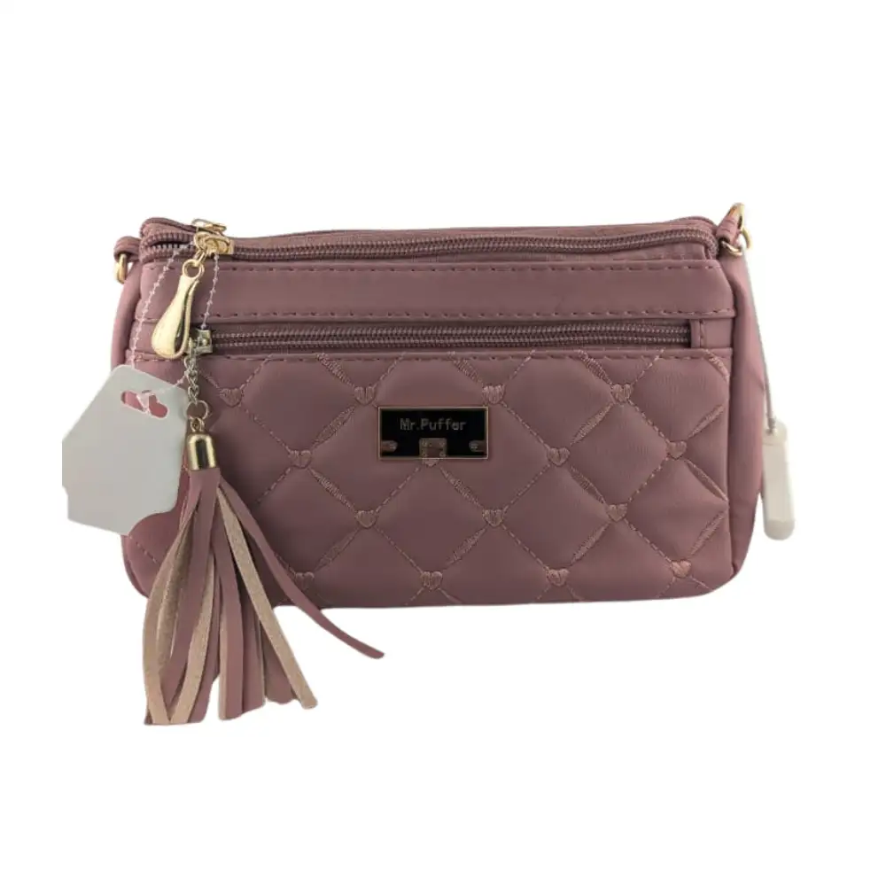 Cartera cruzada rosa pastel con compartimentos y correa ajustable diseño elegante que combina estilo y funcionalidad, ideal para eventos formales y uso diario.